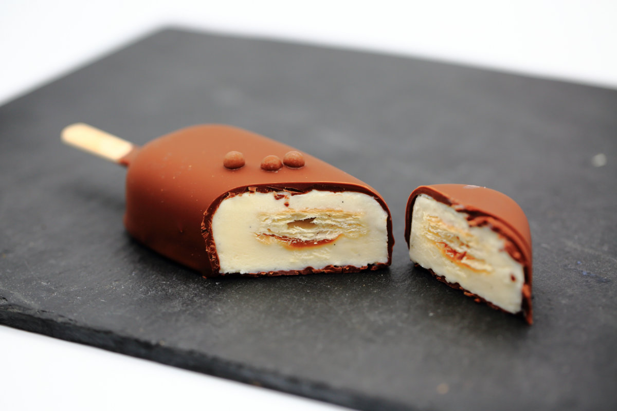 Unsere Bûche Glacée de Noël verbindet cremiges Eis und festliche Eleganz – ein Highlight für jeden Weihnachtstisch. Für die Festtage produzieren wir vier verschiedene Sorten, einige davon in zwei unterschiedlichen Größen.